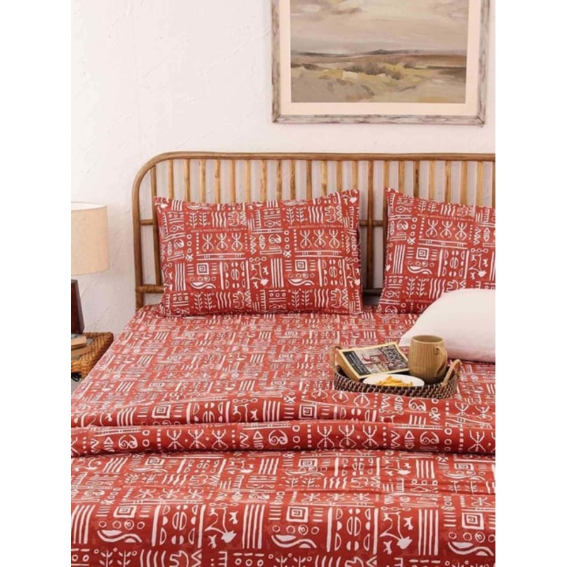 House This Gamathi Rust Cotton 144 TC Single Size Bedsheet With Pillow Covers