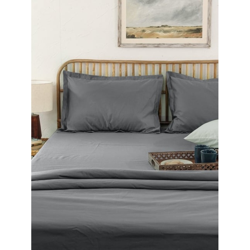 With our solid bedsheet, good sleep is in the cards for you. Made of 100 percent cotton, mercerised and prewashed for a superior finish with a thread count of 300 to offer maximum comfort. Easily amp it up with a solid bedcover and by mixing solid and printed cushion covers.
