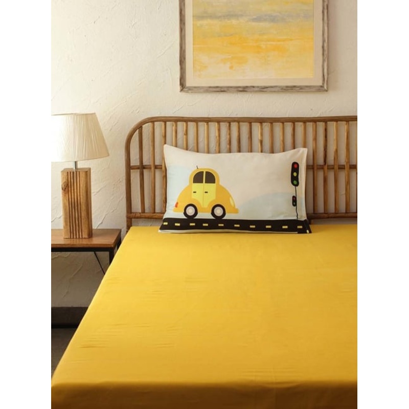 Add radiance to your bedroom with this set of 1 single bedsheet and 1 pillow cover from the Joy Ride collection by House This. This set will create a zestful aura in your room. Made of cotton with a beautiful finish, this set will endear a comforting feel