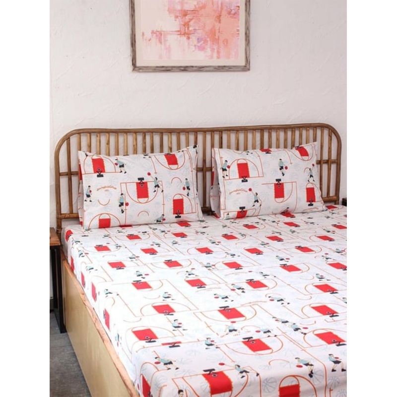 House This Krida Printed Red Cotton Single Bed Sheet with Pillow Cover