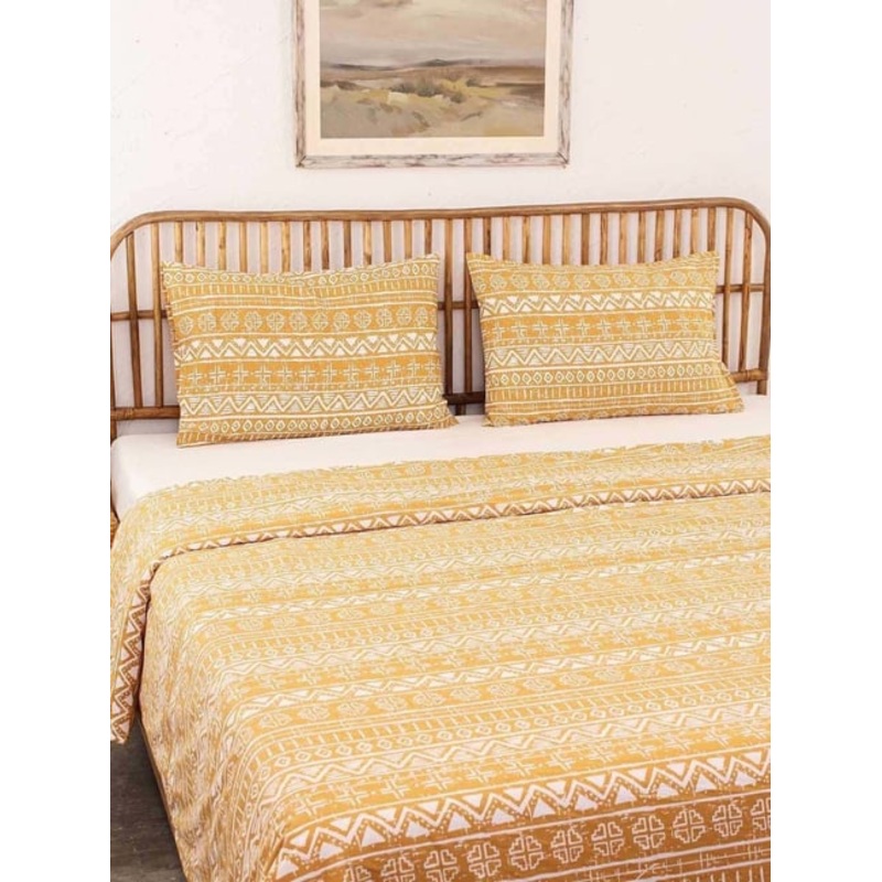 GR4670178176House This Kullu Patti Yellow Cotton 144 TC Single Size Dohar