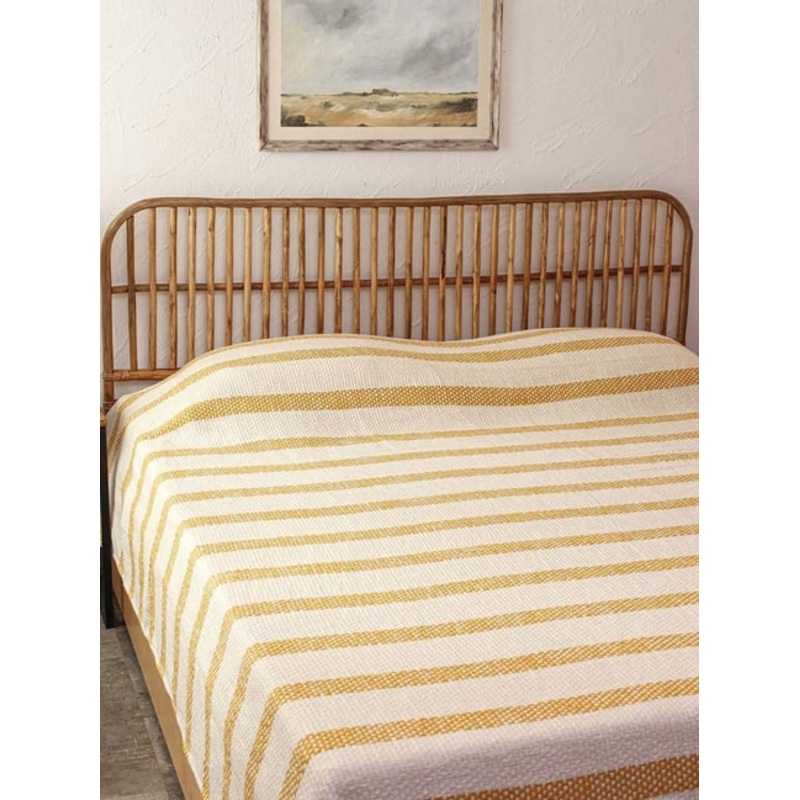 House This Shivalik Beige & Yellow Cotton 180 TC Double Bedcover