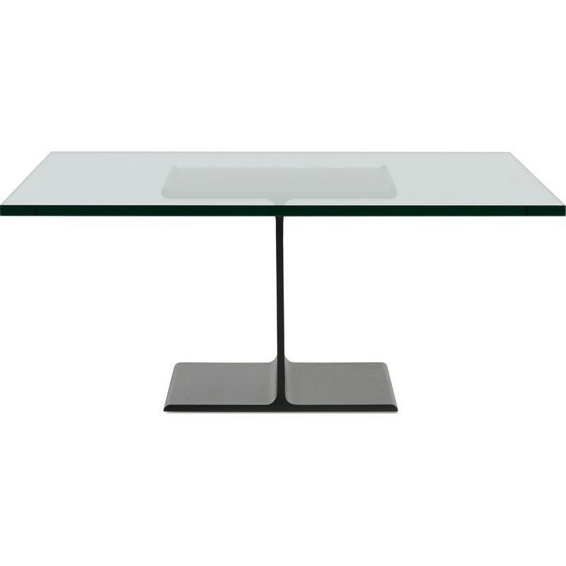 Intrigued by the raw aesthetic of industrial materials, Ward Bennett created the original prototype for his I Beam Table (1963) by cutting a section off an actual steel I-beam, which he went on to use in his own Manhattan apartment for decades. It remains an eye-catching icon of modern design to this day, now crafted of powder-coated aluminum and glass. Bennetts diverse works reside in the permanent collections of the Cooper Hewitt and MoMA, among others. Crafted in North Carolina by skilled artisans using globally sourced materials.