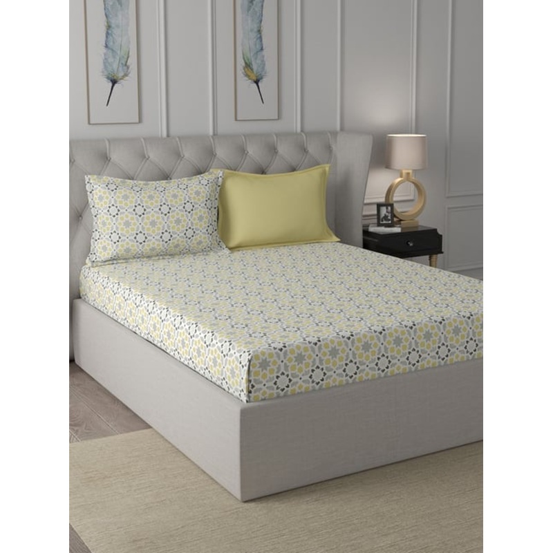 In-House by Maspar Gold 200 TC Cotton Printed Bed Sheet with 2 Pillow Cover