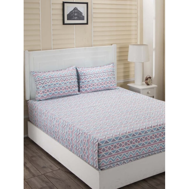 Inhouse Donatella Delilah Blue Print 210TC Cotton Double Bed Sheet With 2 Pillow Covers by maspar