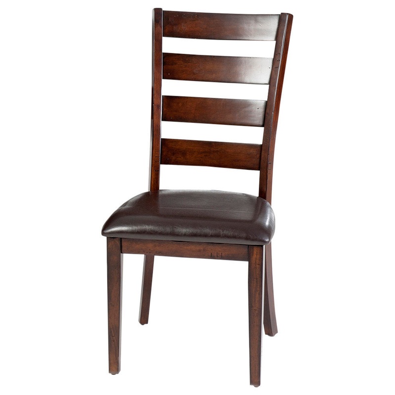 This ladder back dining room chair is constructed with solid mango wood which is hand distressed with a brushed raisin finish. A brown upholstered seat beautifully accentuates the rich tonal woodwork and adds to the contemporary aesthetic of the piece. Com