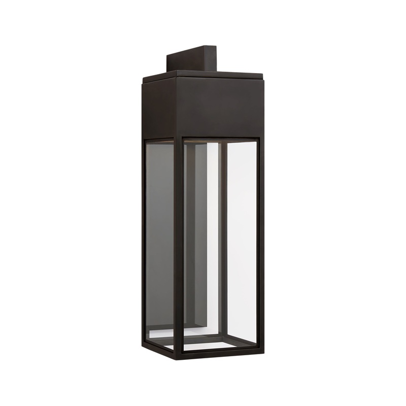 A commanding statement in outdoor lighting, the Irvine Large Bracketed Wall Lantern exudes architectural clarity and refined strength. Standing 26 inches tall, this fixture is crafted with a minimalist bronze frame and crystal-clear glass panels that allow its dedicated LED source to illuminate boldly and beautifully.