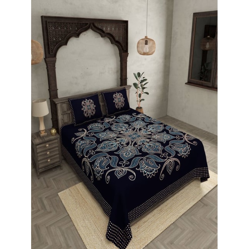 Transform your bedroom into a tranquil oasis with our JaipurFabric blue cotton printed double bedsheet. Made from high-quality 240 tc cotton, this luxurious bedding set is soft, breathable, and guaranteed to provide a restful night’s sleep. The stunning blue print adds a touch of elegance to any decor, while the set comes complete with two matching pillow covers for a cohesive look. Elevate your bedroom style and comfort with this must-have bedding set.