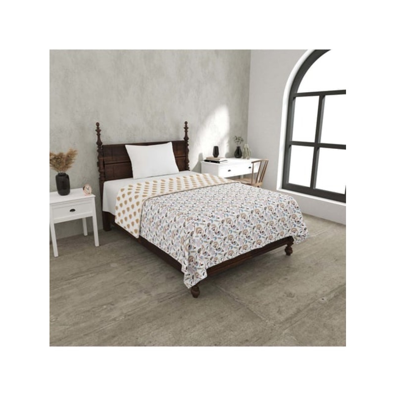 Enhance your bedroom's aesthetic with this set of 1 Motifs reversible single bed dohar from JaipurFabric. Made from 100 percent pure cotton with a thread count of 180 TC, this dohar promises a luxuriously soft and breathable experience for all-season comfo