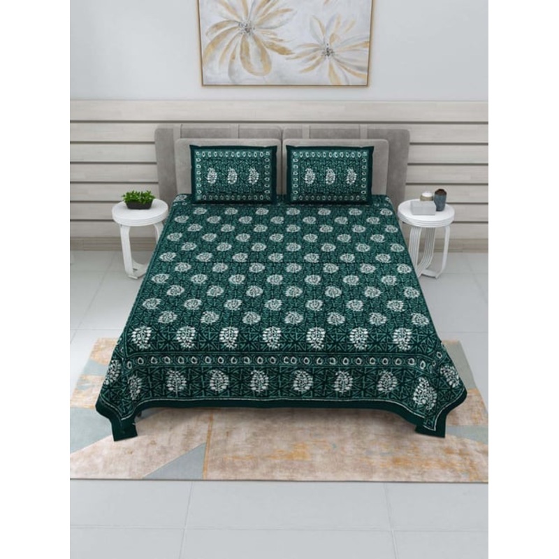 Add a touch of sophistication to your bedroom with this set of 1 bedsheet and 2 pillow covers from JaipurFabric. Crafted from 100 percent pure cotton with a 210 TC thread count, this set offers unmatched softness and durability. The natural breathability o