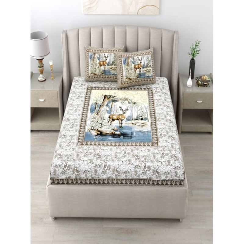 Transform your bedroom into a cozy oasis with our JaipurFabric brown cotton printed double bedsheet. Made from high-quality 180 tc cotton, this luxurious set comes with 2 matching pillow covers for a complete look. The rich brown color and intricate print