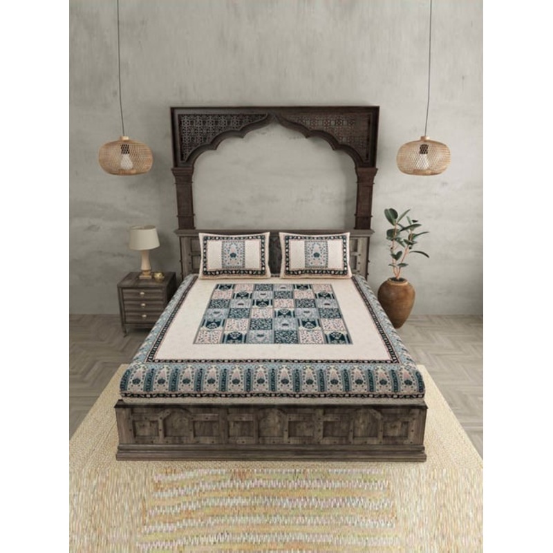 Flaunting classy and attractive tones, this set of 1 the rich legacy double bedsheet and 2 pillow covers from JaipurFabric is sure to add a unique twist to your room. It will let you exhibit your love for home decor. Crafted from 100 percent cotton, it wil