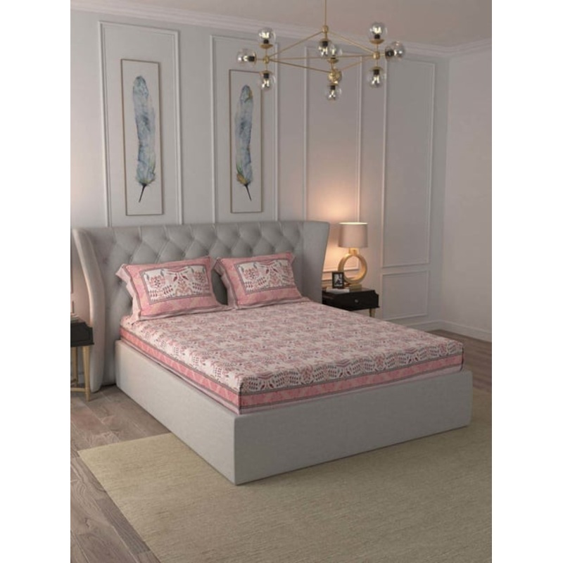 Revamp your bedroom with this exquisite set of 1 bedsheet and 2 pillow covers from JaipurFabric. Made from 100 percent pure cotton, this set features a luxurious 210 TC thread count that guarantees superior softness and comfort. Ideal for all seasons, the breathable fabric keeps you cool in summer and warm in winter.