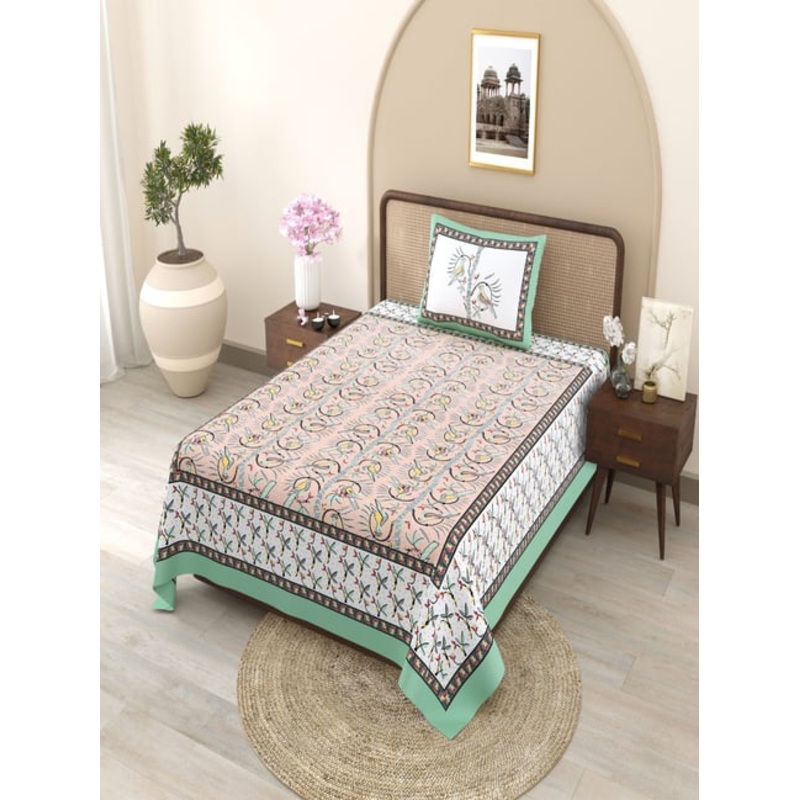 Be the first to review “JaipurFabric Peach Cotton Printed 180 TC Single Bedsheet with 1 Pillow Covers”
