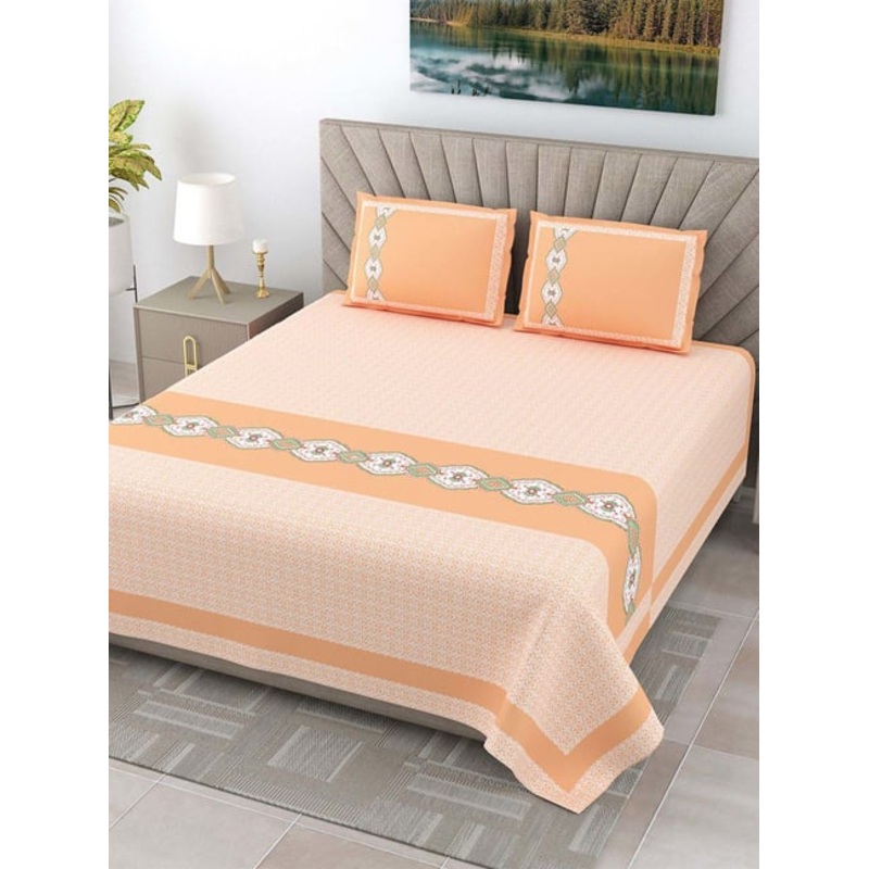 Revamp your bedroom with this exquisite set of 1 bedsheet and 2 pillow covers from JaipurFabric. Made from 100 percent pure cotton, this set features a luxurious 240 TC thread count that guarantees superior softness and comfort. Ideal for all seasons, the breathable fabric keeps you cool in summer and warm in winter.