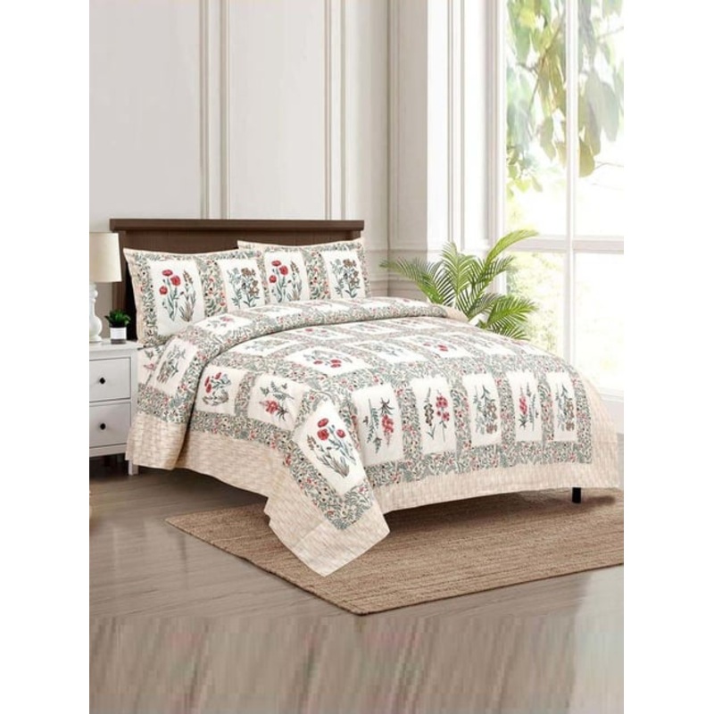 Especially fabricated for those who love to add a tinge of style to their bedding, this set of 1 pot grid double bedsheet and 2 pillow covers from JaipurFabric will be a perfect pick. It will let you exhibit your love for home decor. Crafted from 100 percent cotton, it will let you experience a delightful sleep. With a thread count of 180, the set assures a comfortable slumber experience.