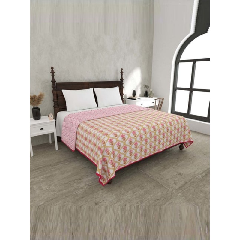 Instantly add a charm to the decor of your bedroom with this set of 1 reversible AC dohar from the house of JaipurFabric. It is tailored to impeccable perfection from mulmul cotton. With a thread count of 150, it ensures utmost comfort. Furthermore, the fl