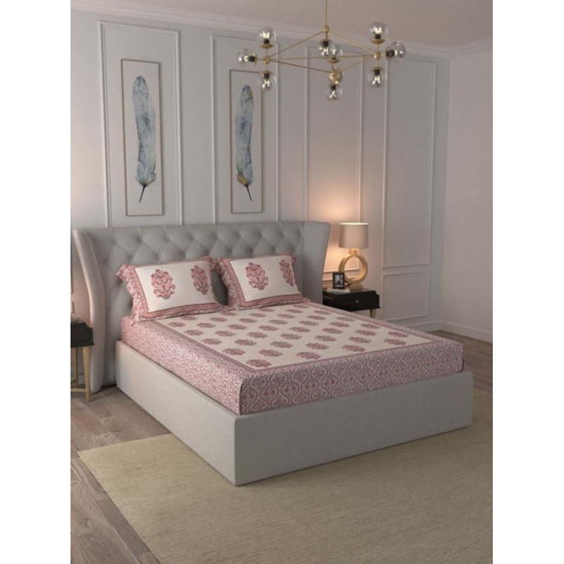 Add a touch of sophistication to your bedroom with this set of 1 bedsheet and 2 pillow covers from JaipurFabric. Crafted from 100 percent pure cotton with a 210 TC thread count, this set offers unmatched softness and durability. The natural breathability o