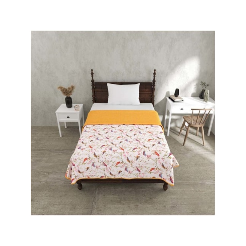 Brighten up your bedroom with this set of 1 Parakeets reversible single bed dohar from JaipurFabric. Made of 100 percent mulmul cotton with a thread count of 180 TC, this dohar offers a soft, breathable feel for ultimate comfort throughout the year. Its reversible design provides the flexibility to switch styles effortlessly, adding versatility to your decor.
