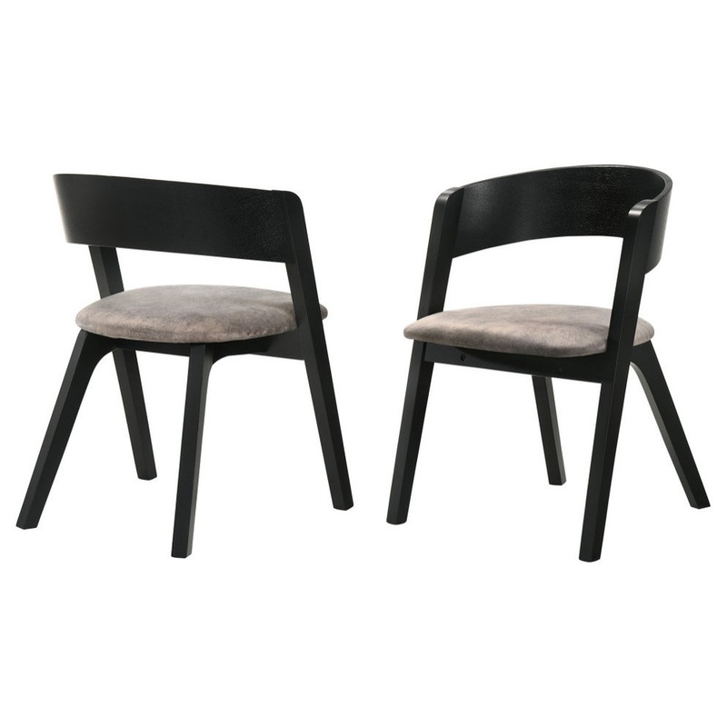 These classic mid-century modern dining accent chairs lend themselves to a retro theme with the open and round backs. The strong rubberwood seamless looking frame holds a soft upholstered seat. Use these chairs to complete a mid-century style dining room set or around the house as accent chairs. The Armen Living Jackie dining chairs are available in Walnut or Black and come as a set of 2.