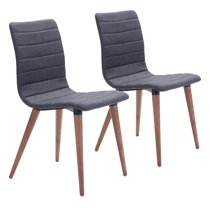 Mid-Century Modern perfection as the Jericho chair features poly-linen upholstered seam detail to slim seat/back design and is finished with sturdy all wood legs in warm walnut finish. Color options are grey or purple poly-linen fabric.