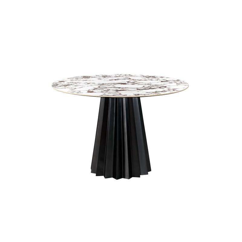 The Jimena Marble 47” Round Dining Table is a beautiful and elegant piece to upgrade your dining space! The ceramic table top is designed to mimic black and white marble and perfectly complements the sturdy manufactured wood base with a star shape. The high-quality materials and careful construction ensures this table will stay pristine for years to come.