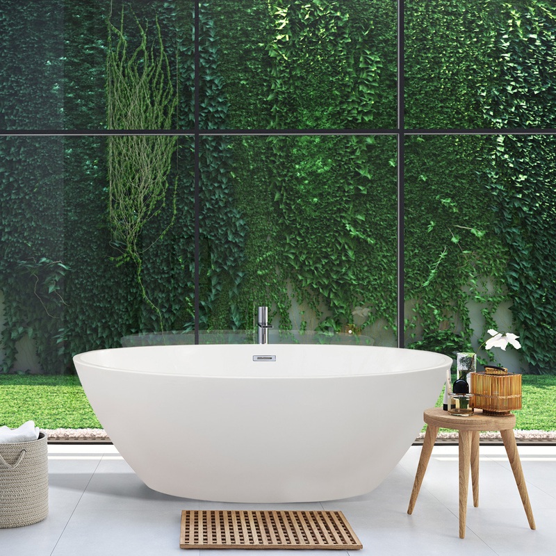 With its soft and seamless oval design, the Jolie by Altair makes a stunning focal point for any bathroom space. This deep, spacious tub is made for long, hot baths and peaceful moments. Note the way the gleaming chrome finishes pop against the pristine white of the acrylic. Crafted with superior care and attention to detail.