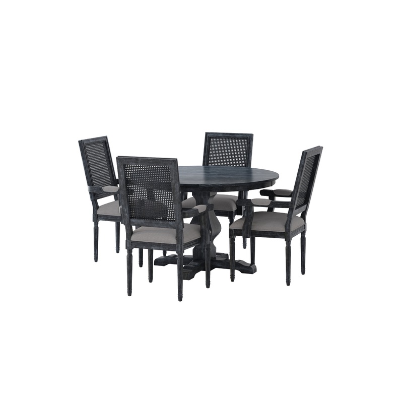 -FRENCH COUNTRY INSPIRATION: From slender fluted legs to sophisticated square backrests made with cane webbing, this dining set offers a French country inspiration for your home. The weathered, wire-brushed woodwork, gorgeous pedestal base, and elegant curves draw influence from Queen Anne styling to bring your home together with a classic touch.