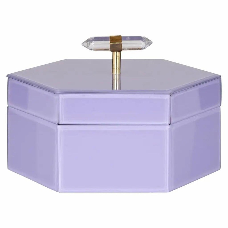 A Jutta kszerdoboz egy elegns s modern megjelens trol, mely vilgos lila sznben kaphat, egy kis arany s kristly fogantyval dsztve. A doboz hatszglet formja s modern megjelense tkletes vlaszts lehet brmilyen kszer vagy kiegszt trolsra. A gyanta borts tartss