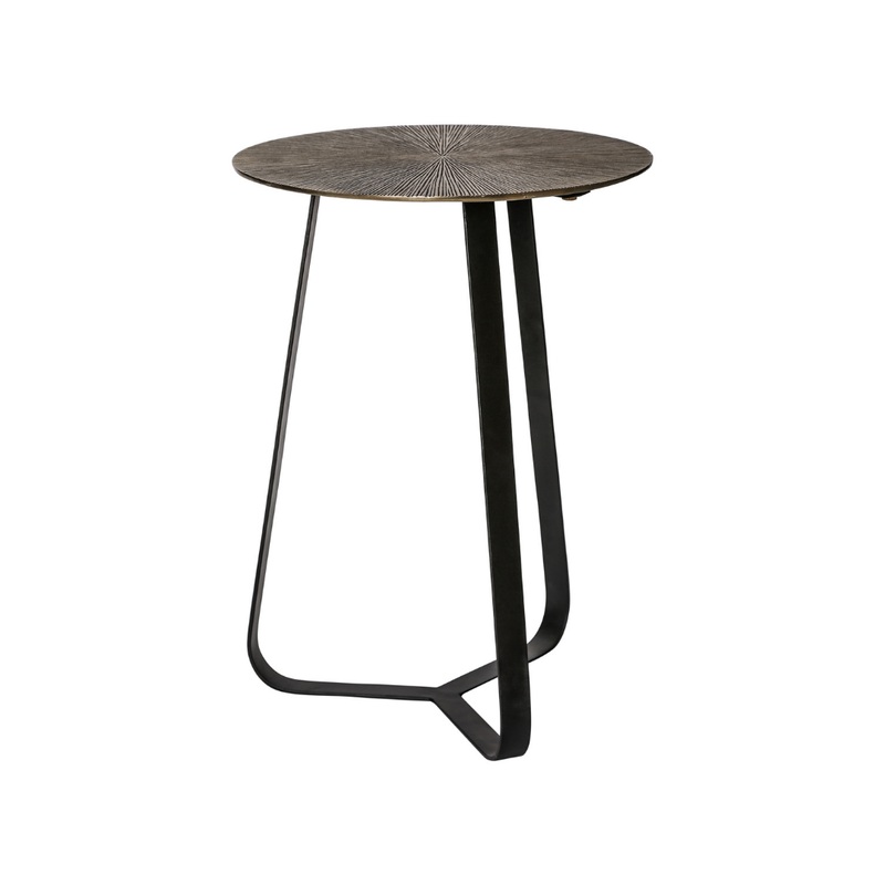 Az atikolt arany szn, sugr irny mintzattal elltott Kae lerakasztal egy stlusos s praktikus btordarab. A hromg fekete fm vz modern hangulatot, s knnyedsget raszt, mikzben stabil alapot nyjt. Az alumniumbl kszlt termk hossz lettartammal br. A Kae kollekci do