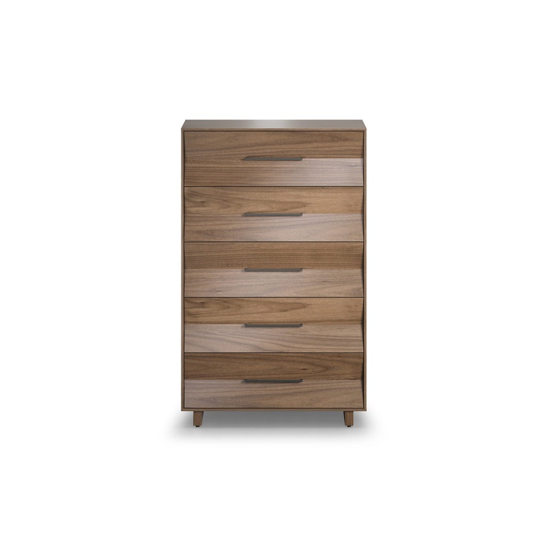 Available in Washed Oak and Natural Walnut, the KAVA 5-Drawer Chest is a sleek, versatile storage solution designed to complement the entire KAVA Bedroom Collection.