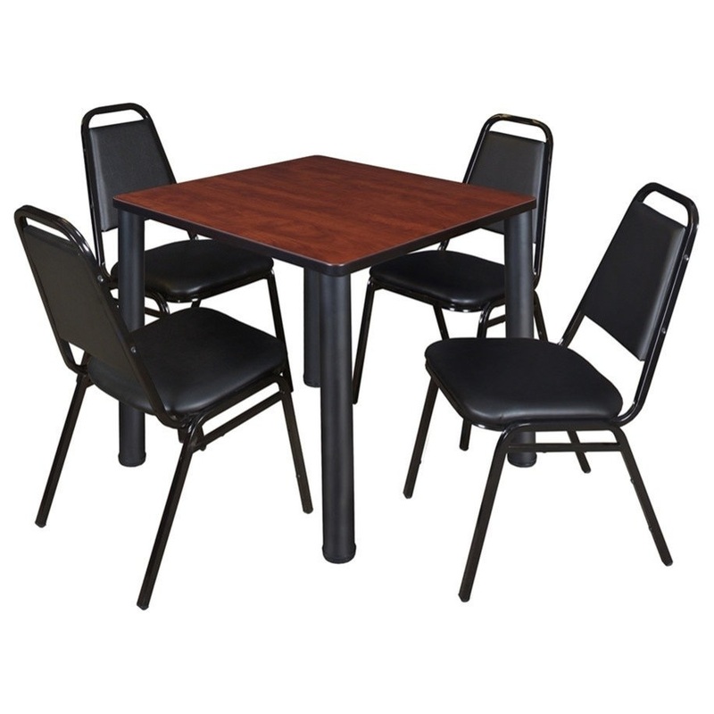 Kee 30″ Square Breakroom Table, Cherry/Black and 4 Restaurant Stack Chairs Black, 30″ – Contemporary – Dining Sets – by Bison Commerce
