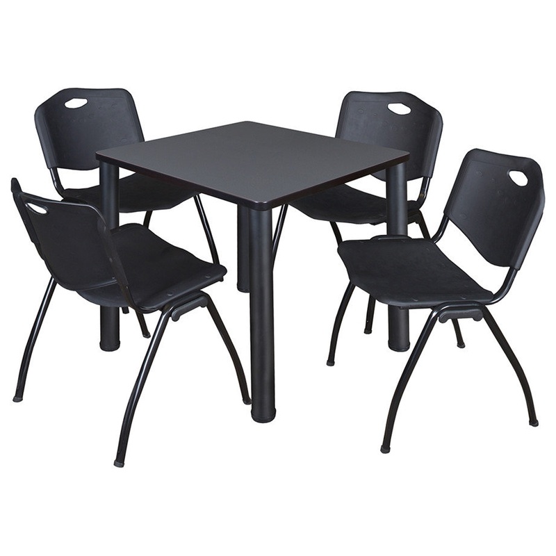 Kee 30″ Square Breakroom Table- Grey/ Black & 4 ‘M’ Stack Chairs- Black – Contemporary – Dining Sets – by Bison Commerce