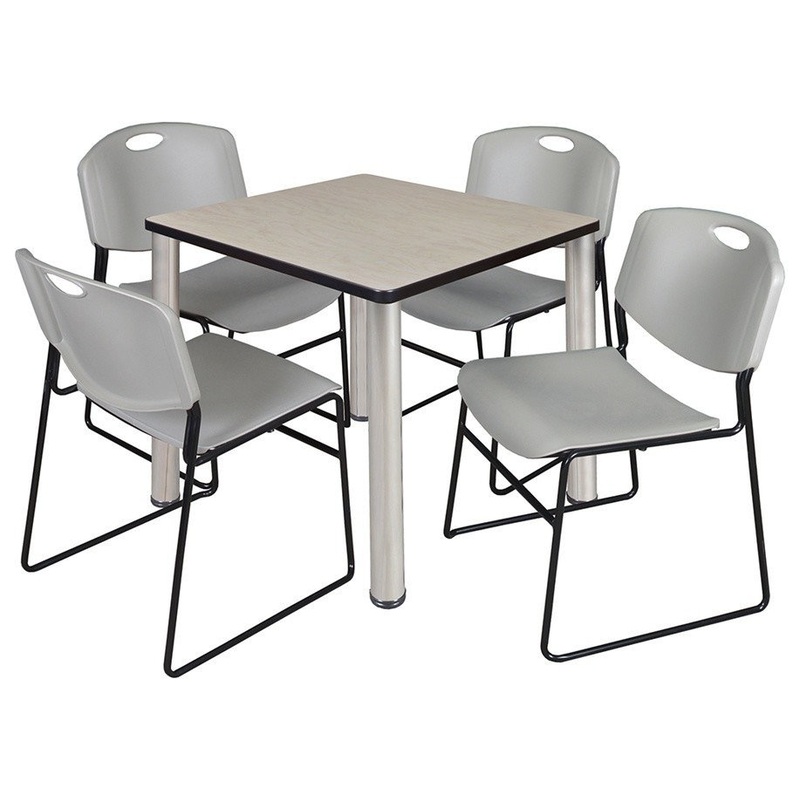 -Versatile table and chair set includes one 30-inch square table with chrome post legs and 4 Gray Zeng Stack Chairs