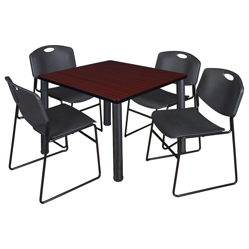-Versatile table and chair set includes one 36-inch square table with black post legs and 4 Black Zeng Stack Chairs