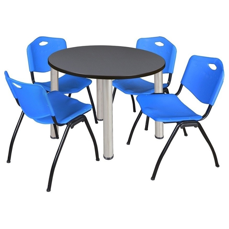 Kee 42″ Round Breakroom Table, Gray/Chrome and 4 “M” Stack Chairs, Blue, 42″ – Contemporary – Dining Sets – by Bison Commerce