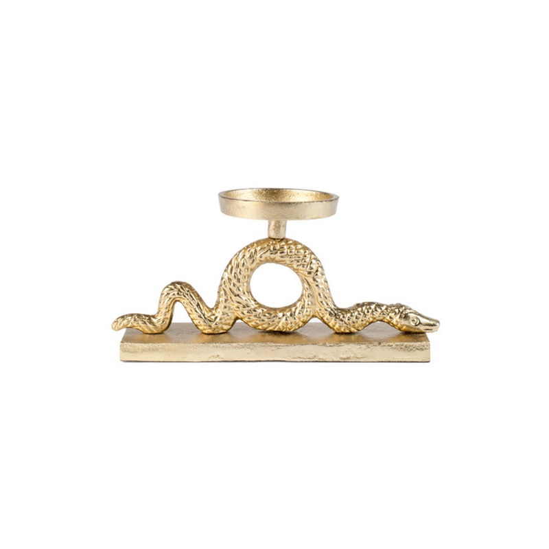 A Keep The Snakes Away gyertyatart egy klnleges kiegszt, amely arany sznre festett alumniumbl kszlt. A vastag talpazaton egy rszletgazdag kidolgozs kgy tallhat, s egy darab tmb gyertya hasznlathoz alkalmas.