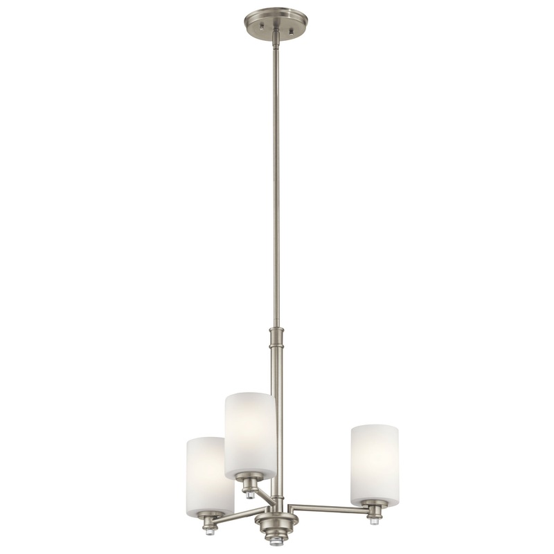 The Joelson 18.5" 3 light mini chandelier features a classic look with its Brushed Nickel finish and satin etched cased opal and clear glass accent glass.The Joelson Chandelier is retro inspired and is perfect in several aesthetic environments, including t