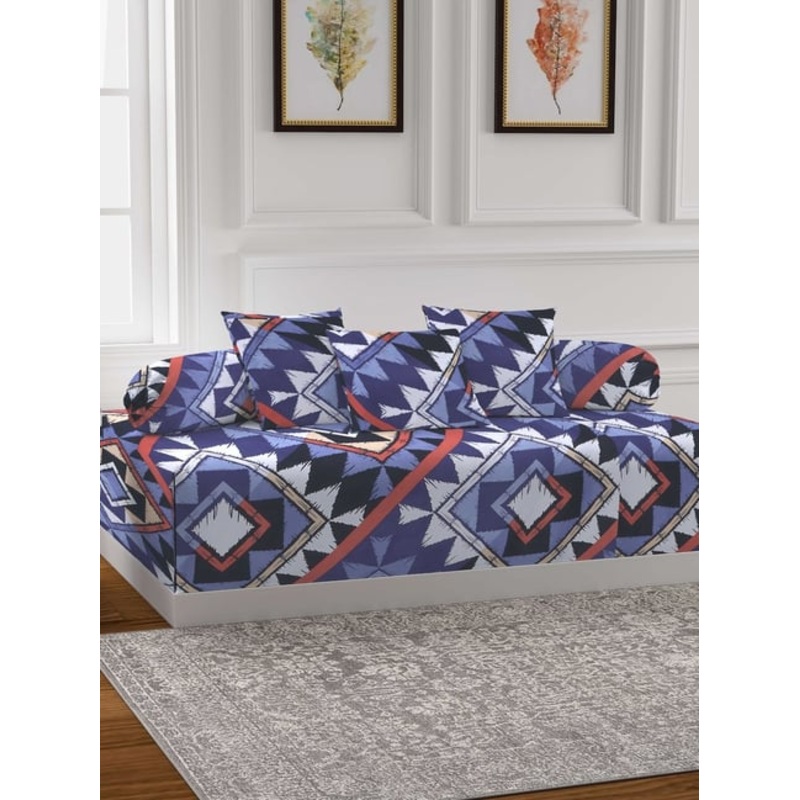 Add a dash of color to your living room’s decor and brighten your space with this dewan set from Klotthe. It is made of premium quality cotton. It ensures comfort and adds beauty to your day bed. The beautiful pattern makes it a must-have in your linen collection. It comes in a set of It includes 1 Bedsheet, 3 Cushion Covers & 2 Bolster Covers.