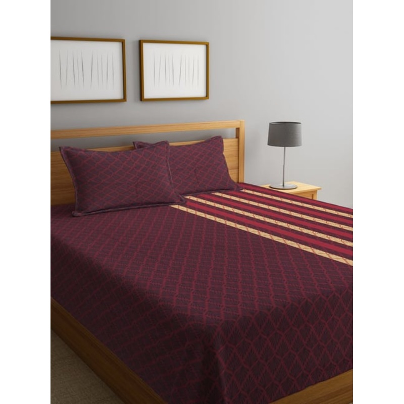 GR4670178232Klotthe Woven Maroon 350 TC Cotton Double Bed Cover With 2 Pillow Covers