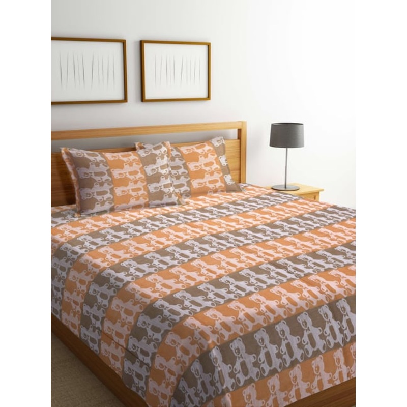GR4670178068Klotthe Woven Multicolor 350 TC Cotton Double Bed Cover With 2 Pillow Covers