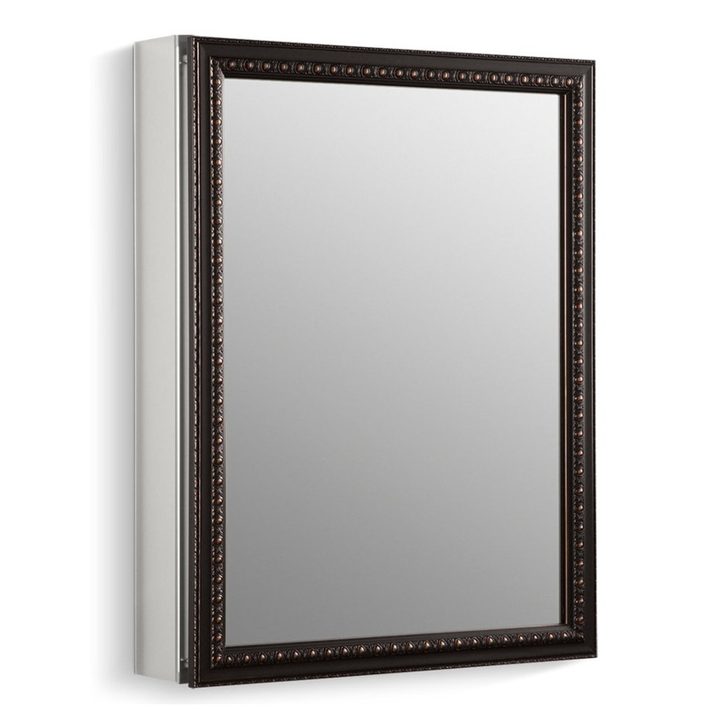 This cabinet boasts a framed mirrored door that can be installed with a left or right hinge and features a beautiful oil rubbed bronze finish. Inside, two adjustable 1/4″ glass shelves hold all your toiletries and bath items in front of a beautifully mirrored rear wall. Rust-free aluminum construction ensures years of use, and installation has never been easier with the included side kit, allowing for either recess or surface-mount installations. Features: Constructed from High Quality, Anodized Aluminum with a Durable Rust-Free, Chip-Free Finish Features Full-Overlay, Dual-Sided Mirror Door with Oil Rubbed Bronze Finished Frame Mirrored Interior Rear Wall with Two Adjustable 1/4 Inch Thick Glass Shelves Reversible Hinges with 108 Degree Opening Capability Allows Door to Open on Either Left or Right Side Included Side Kit Allows for Either Surface or Recess Mount Installation Optional Audio Kit can be Installed when Surface Mounted (Kit Sold Seperately) Specifications: Height: 26″ Width: 20″ Depth: 5-3/8″ Wall Opening Height: 26″ Wall Opening Width: 20″ Wall Opening Depth: 4″ With everything that Kohler does it lives on the leading edge of design and technology, while maintaining a constant level of quality regardless of price. Kohler sets the standard of excellence in its field, and yet is constantly striving to improve. From sustainable products in the kitchen and bath, to engines for lawn tractors and generators, to power systems that protect data centers and urban landscapes all over the world; this is what the Kohler Company is all about.