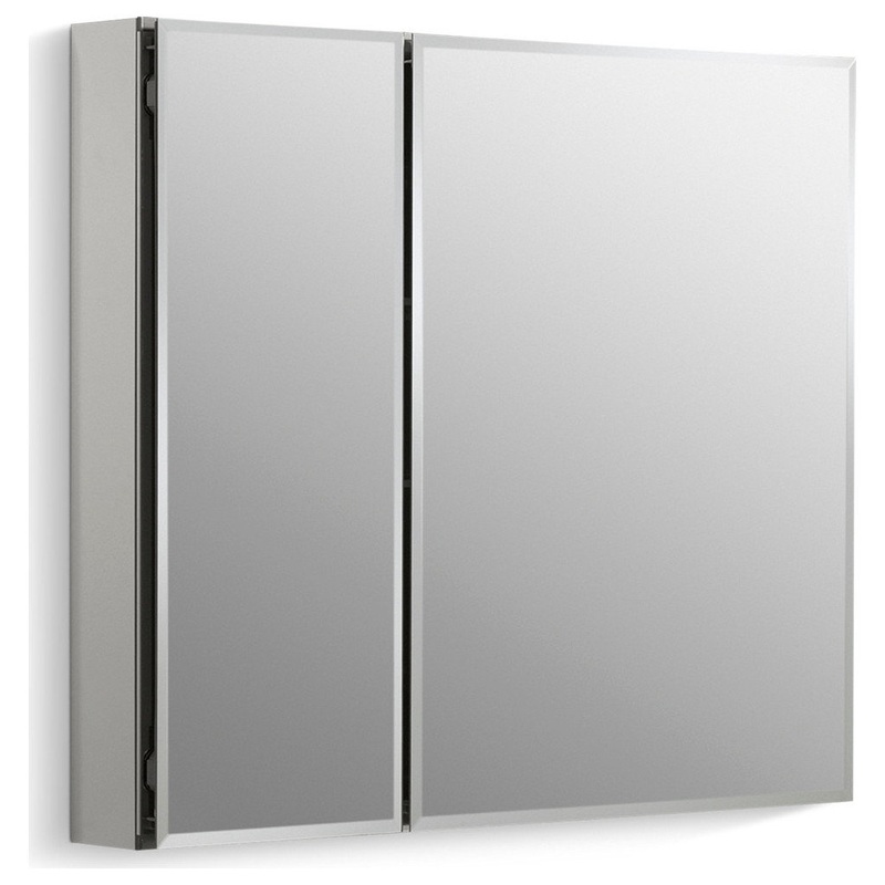 Product Features: Constructed from high quality, anodized aluminum with a durable rust-Free, chip-free finish Features full-overlay, dual-sided mirror door with beveled edges Includes mirrored interior rear wall with two adjustable 1/4 inch thick glass shelves 108 degree opening capability allows full cabinet access Mirrored side kit allows for either surface or recess mount installation Optional audio kit can be installed when surface mounted (kit sold separately) Product Specifications: Height: 26″ Width: 30″ Depth: 4-13/16″ Wall Opening Height: 25-1/8″ Wall Opening Width: 29″ Wall Opening Depth: 3-5/8″ Variations: K-CB-CLC1526FS 15″ x 26″ Single Door Model K-CB-CLC2026FS 20″ x 26″ Single Door Model K-CB-CLC2526FS 25″ x 26″ Double Door Model K-CB-CLC3526FS 35″ x 26″ Double Door Model With everything that Kohler does it lives on the leading edge of design and technology, while maintaining a constant level of quality regardless of price. Kohler sets the standard of excellence in its field, and yet is constantly striving to improve. From sustainable products in the kitchen and bath, to engines for lawn tractors and generators, to power systems that protect data centers and urban landscapes all over the world; this is what the Kohler Company is all about. Sleek mirrored surface inside and outside, this 30-inch frameless medicine cabinet is a versatile option. The two mirrors on the front doors have a 1/2-inch bevel and appear as one larger mirror for a design that integrates easily into any bath or powder room. Interior glass shelves are adjustable to accommodate your toiletries. This mirrored cabinet features full-overlay 1/2″ beveled frameless double doors. Inside, two adjustable 1/4″ glass shelves hold all your toiletries and bath items in front of a beautifully mirrored rear wall. Rust-free aluminum construction ensures years of use, and installation has never been easier with the included side kit, allowing for either recess or surface-mount installations.