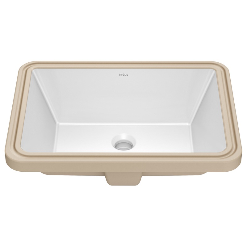 Create a clean and contemporary look in your bathroom with the streamlined undermount bathroom sink design of Elavo Ceramic Bathroom Sinks from Kraus. Made from high-quality vitreous china, these sinks offer the simple and timeless aesthetic of porcelain enamel, with durable construction for everyday use. The high-gloss porcelain glaze with a smooth non-porous finish is stain resistant and easily wipes clean. Undermount bathroom sink installation creates a seamless transition between sink and countertop, with no exposed mounting deck, allowing you to easily wipe water into the sink when cleaning your bathroom sink vanity. An overflow drain helps prevent the sink from overflowing while the primary drain is closed. Standard US drain opening is compatible with most plumbing fittings