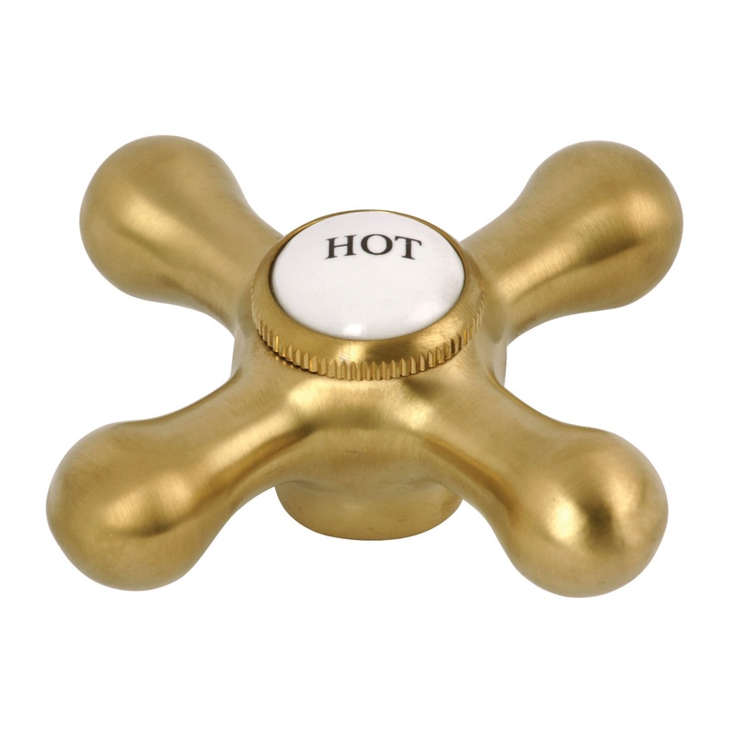 KSH1167AXH Hot Metal Cross Handle, Brushed Brass Featured in several of Kingston Brass' state-of-the-art faucets is the magnificent cross handle. Renowned for its traditional elegance, the cross handle is the perfect embodiment of effortless operation, dep