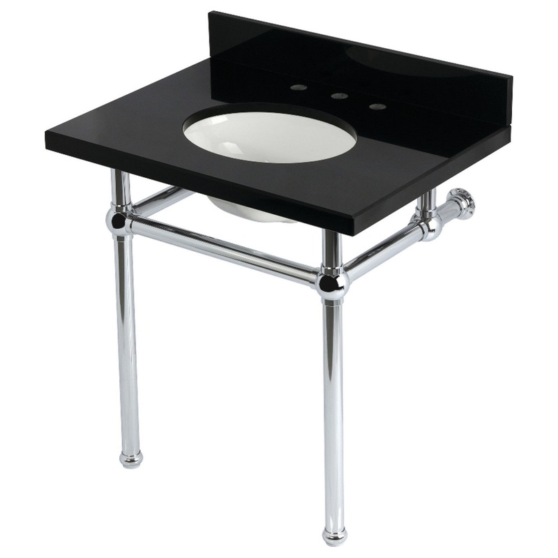 Enhance your bathroom with this exquisite console sink set featuring decorative traditional legs and a stunning black granite countertop. Designed for durability and longevity, this set is a perfect solution for compact or tight spaces. It comes complete with an pre-installed undermount oval basin, ensuring effortless maintenance. The flawless, stain-resistant surface of the countertop and the gleaming finish of the legs make this set a captivating centerpiece in your bathroom decor. Please note that the water supply kit, drain assembly, and faucet are sold separately, allowing you to customize your choices according to your personal style and preferences.