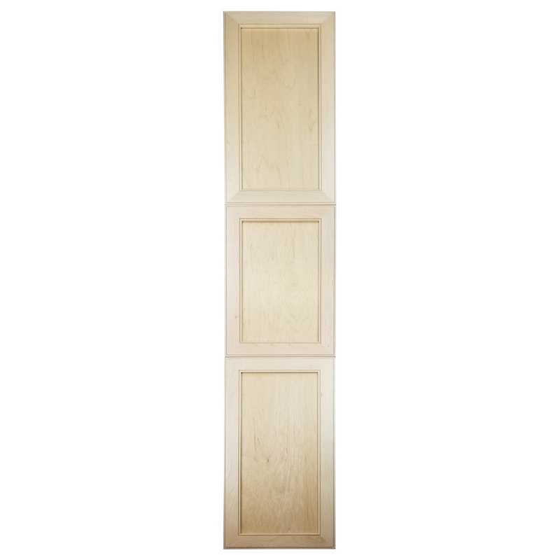 Perfect for any bathroom. Recesses in the wall between the studs, and simply screws to the studs on each side of the opening. Only the doors are outside the wall. Fully adjustable glass shelves inside. Our unique, patented design of shelf supports keeps each shelf in place. Concealed hinges with soft close built in assures the door will never slam shut, but softly close on its own instead. Box is SOLID pine and the Inset panel style door is SOLID maple. We’ve painted the inside of the box white, so you don’t have to! Unfinished doors can be painted or stained. The box is 3.5″ deep inside and gives you plenty of usable depth, but fits in standard 2×4 walls. This model has THREE doors which open to reveal two separate cabinet sections. Cabinet box is 12.5″ wide inside. Doors are reversible to open either Left or Right. Completely assembled! All you need to do is put one screw in each hinge to mount the door. Then insert it in the wall and screw it to the studs with included screws. If you are replacing a current cabinet, measure your wall opening! White plastic trim surround covers the rough edges of your opening up to 1/2″ all around. Doors cover the trim surround when closed so the only thing you see outside the wall is the door itself. Made in USA.