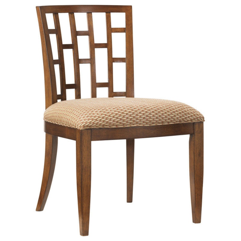 Standard upholstered seat is a tan and rust geometric pattern. Model # (MPN)536-880-01Product ID72043916Manufactured ByTommy Bahama HomeSold ByHouzzSize/WeightW 22" / D 23.5" / H 34.5" / 17 lb.MaterialsWoodAssembly RequiredNoCategoryDining ChairsStyleTrans