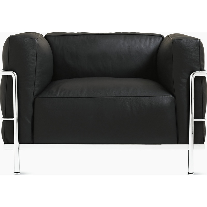 The LC3 Collection (1928) reverses the standard structure of sofas and chairs. External steel frames cradle thick, resilient cushions, integrating padded comfort with International Style functionality. The simple tubular structure is remarkably relevant to