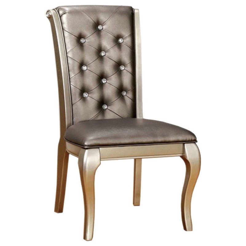 Leatherette Buttoned Side Chair with Cabriole Legs, Set of 2, Gray and GoldAdd a distinctive touch to your indoor tables by adorning them with this striking button tufted side chair. Made up of wood veneer and solid wood, these chairs feature gray faux lea